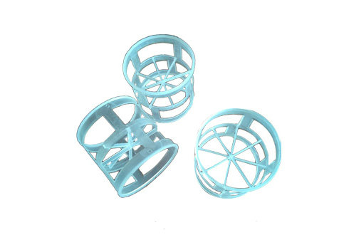 聚丙烯鮑爾環是在普通拉西環的壁上開八層長方形小窗,小窗葉片在環中 心相搭,上下面層窗位置相互交搭而成。它與拉西環填料的主要區別是在于在側壁上開有長方形窗孔,窗孔的窗葉彎入環心,由于環壁開孔使得氣、液體的分布性能較拉西環得到較大的改善,尤其是環的內表面積能夠得以充分利用。