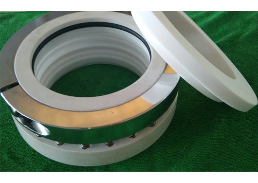 2、當介質有毒、易燃、易爆以及對泄漏量有嚴格要求時,不易使用。適用于公稱壓力小于或等于0.4MPa,工作溫度為大于-20-200°C的搪玻璃攪拌容器用機械密封,攪拌軸外徑為40-140mm,轉軸線速度小于2m/S。采用單端面小彈簧聚四氟乙烯波紋管。 使用工況:無懸浮顆粒的腐蝕性氣體(HF除外) 單端面機械密封工作原理:靠垂直于旋轉軸線的端面在流體壓力和補償機構彈力的作用以及輔助密封的配合下保持貼合并相對滑動而構成的防止流體泄漏的裝置。